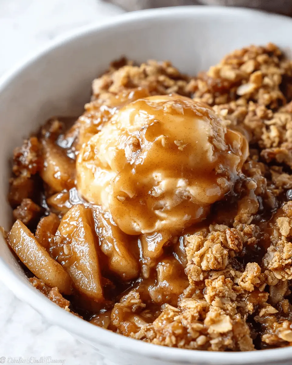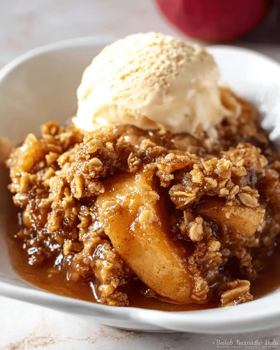 - Apple Crisp Sundae: Top your apple crisp with a scoop of ice cream, drizzle with chocolate or caramel sauce, and finish with nuts or sprinkles for a stunning dessert.