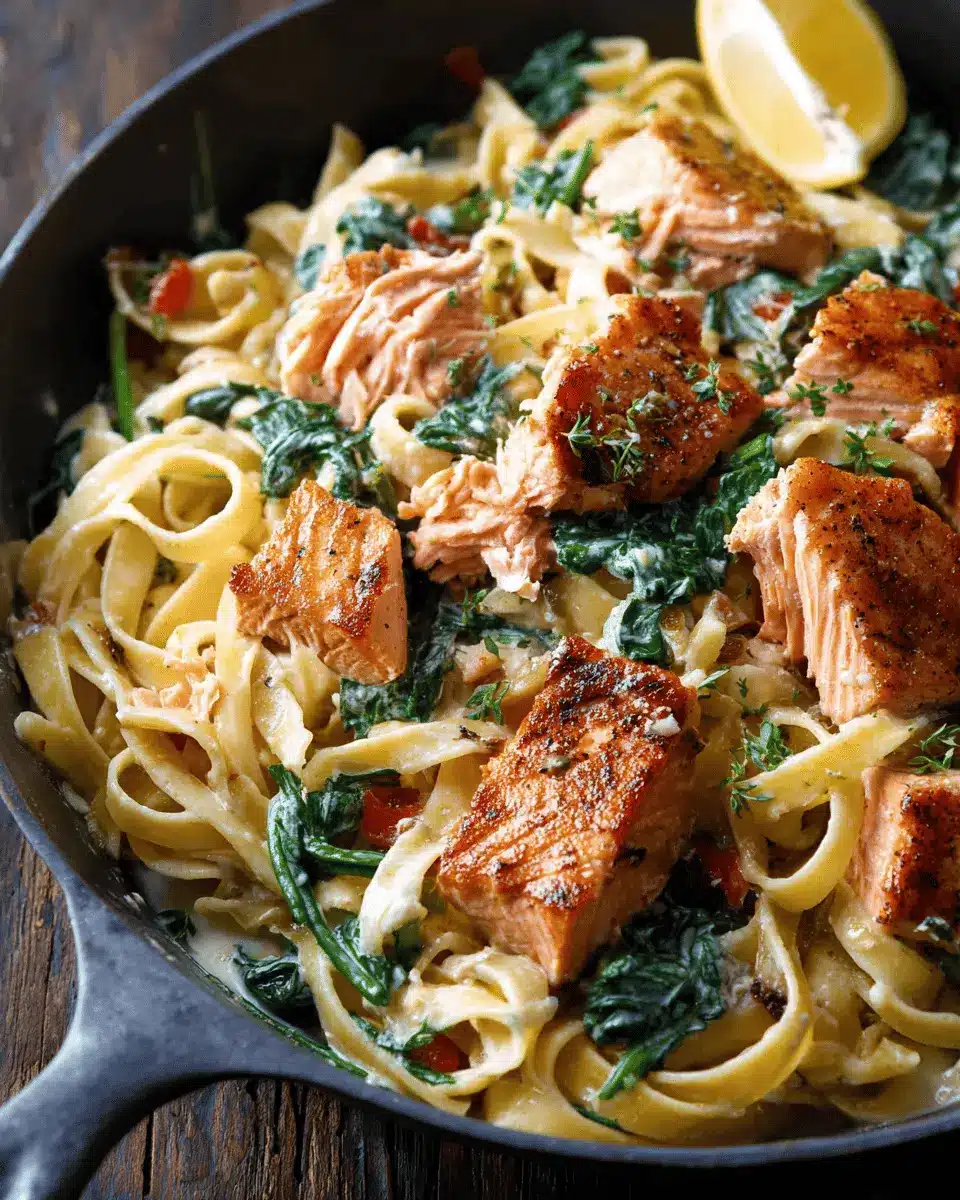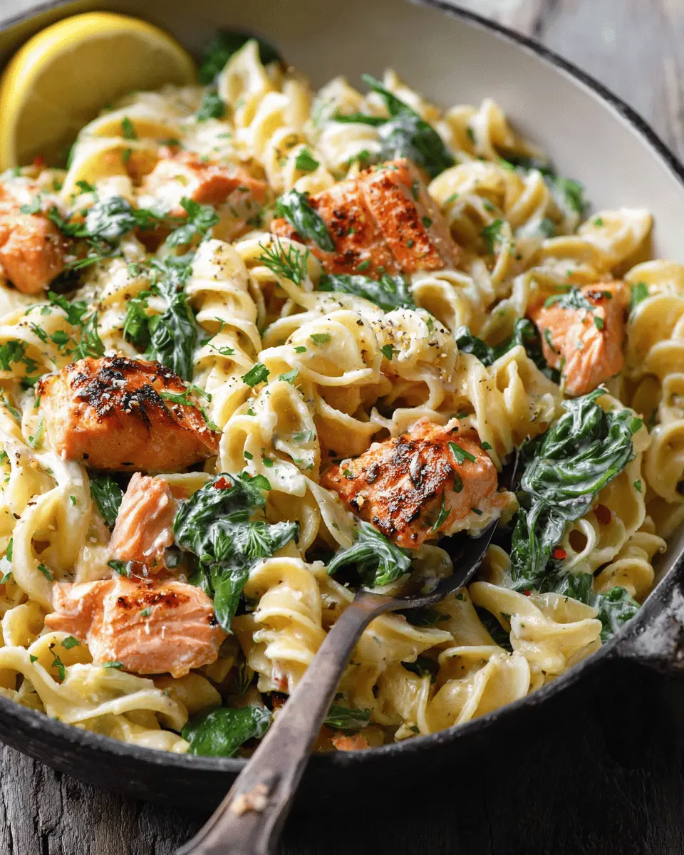 Feel free to make this creamy salmon pasta your own with a few optional additions:
